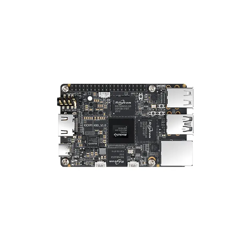 KICKPI-K8D 是一款基于瑞芯微主控芯片RK3588S2 为主控制芯片的开发板。它采用四核Cortex-A72和四核Cortex-A53处理器,主频高达2.0GHz,功耗低,性能高。单板支持单网、双频WIFI等多种网络通信方式,通信稳定,速度更快,适合各种场景需求。